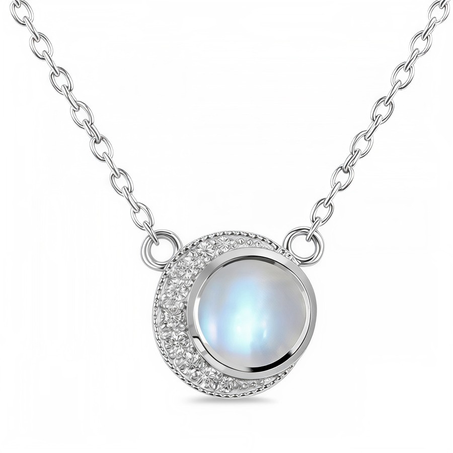 Die Größe des Mondsteins ist 8 mm und der Gesamtdurchmesser des Anhängers beträgt 11 mm.