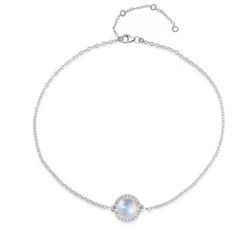 Armband aus 925er Sterlingsilber mit natürlichem Mondsteinkristall, umgeben von Zirkonia.