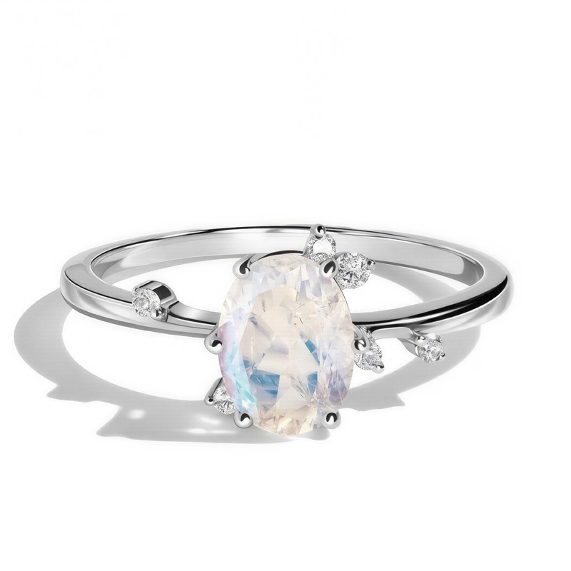 Budući da je to prirodni mjesečev kamen, adularescencija (plavi sjaj) je različita u svakom prstenu, neki je imaju više, drugi manje.