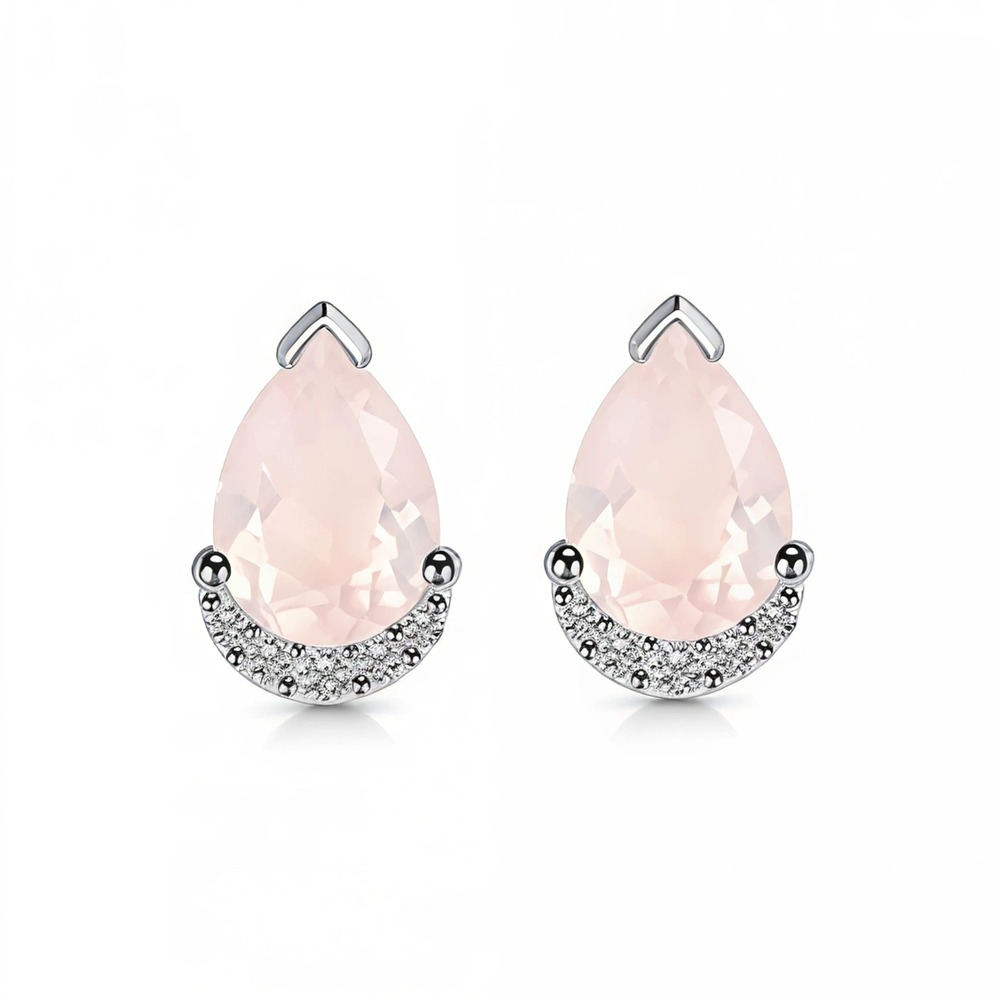 Uhani izdelani iz 925 srebra, z naravnim kristalom roževec ali rožnati kremen in drobnimi belimi topazi, ki simbolizira univerzalno ljubezen in sočutje. Roževec neguje srčno čakro, prinaša zadovoljstvo, veselje in pomaga zaceliti stare čustvene rane. Na voljo v 2 različicah: srebro 925 in srebro 925 s prevleko iz rodija.