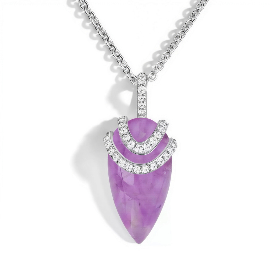 Srebrna verižica z obeskom z naravnim ametistom in belimi topazi. Ametist, simbol duhovnosti, mistike in zaščite, vas bo spremljal s svojo edinstveno energijo in čudovito vijolično barvo, ki prinaša notranji mir, zaščito in moč.