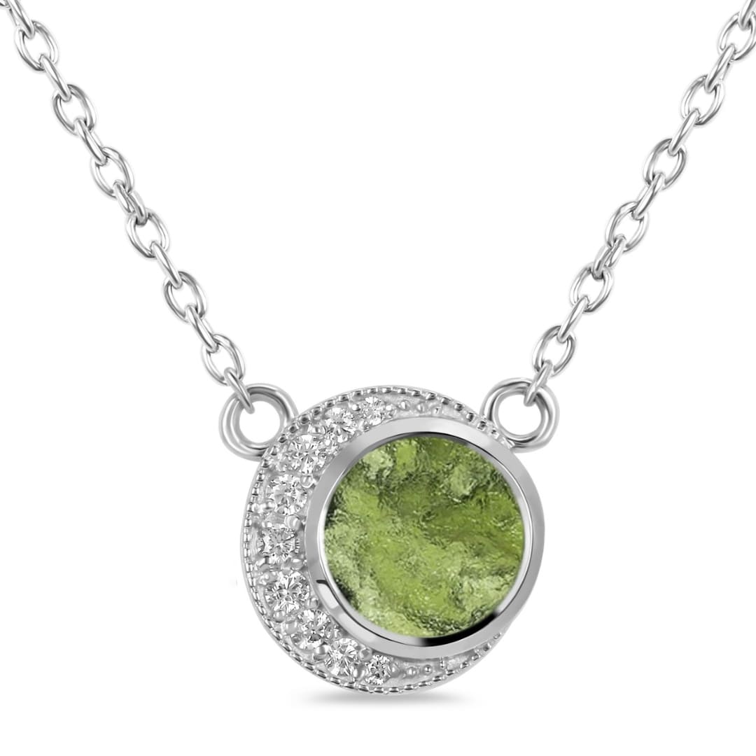 Verižica izdelana iz 925 srebra, z naravnim surovim tektitom moldavit in drobnimi belimi topazi.