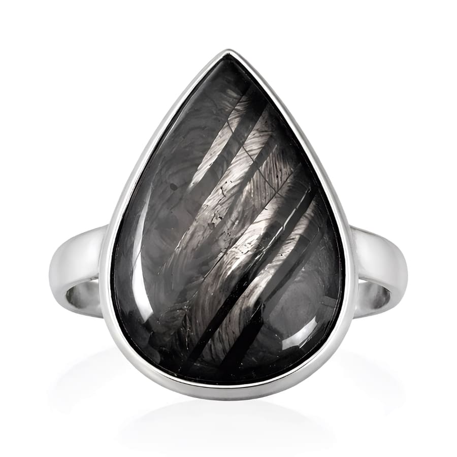 Unikaten prstan izdelan iz 925 srebra z naravnim poliranim hiperstenom.