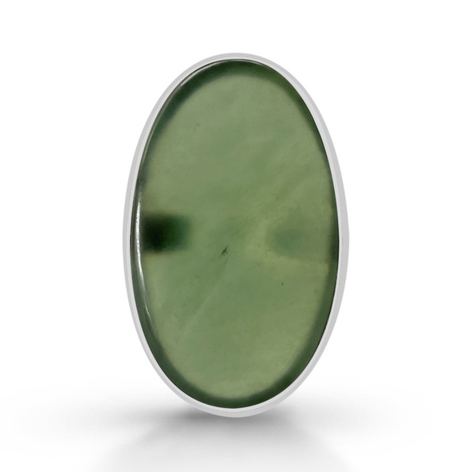Prstan izdelan iz 925 srebra, z naravnim poliranim žadom (nefrit).