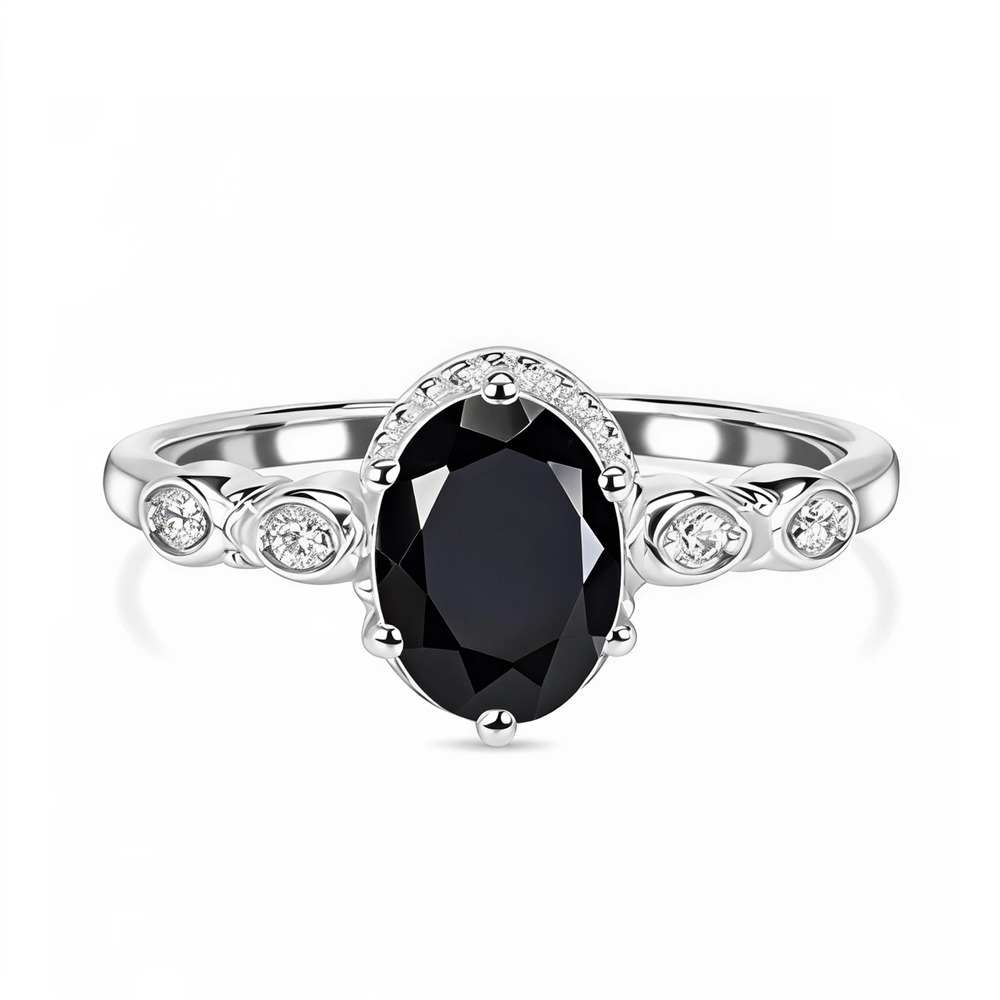 Prstan izdelan iz 925 srebra, z naravnim brušenim kristalom črni turmalin in drobnimi belimi topazi. Črni turmalin ima močno sposobnost zaščite pred negativno energijo, stresom in čustvenim izsiljevanjem, pomaga nam pri duhovni rasti, izboljšuje intuicijo in čustveno stabilnost. Na voljo v 3 različicah: srebro 925, srebro 925 s prevleko iz rodija in srebro 925 s pozlato čistine 750/1000 (18 karatov).