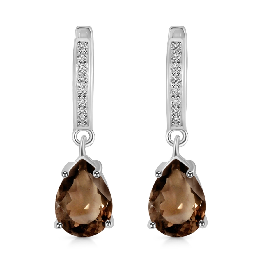 Ženski uhani iz srebra ZARIA, Dimni kremen in Beli Topaz