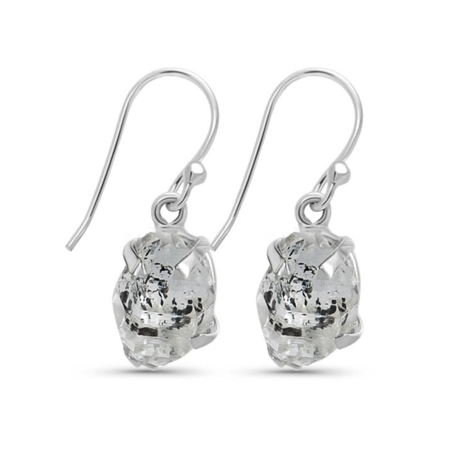 Uhani izdelani iz 925 srebra s prevleko iz rodija, s surovim naravnim kristalom herkimer diamant.